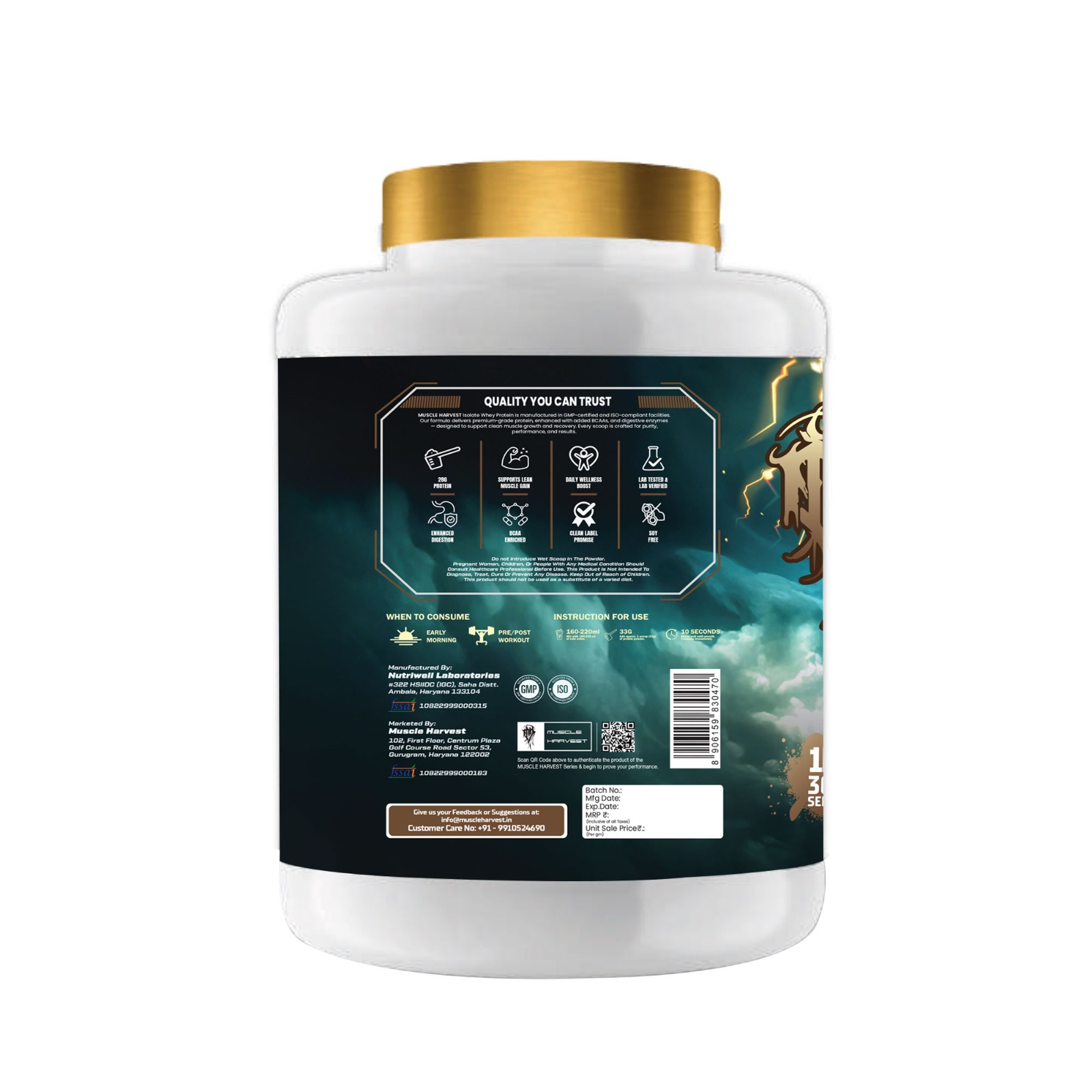 Muscle Harvest God of Whey Isolate Protein is crafted for those who want the highest protein purity with added nutritional support. With 28g protein per serving, it stands among the most protein-dense whey isolate formulas—helping you build lean muscle, recover faster, and perform better.