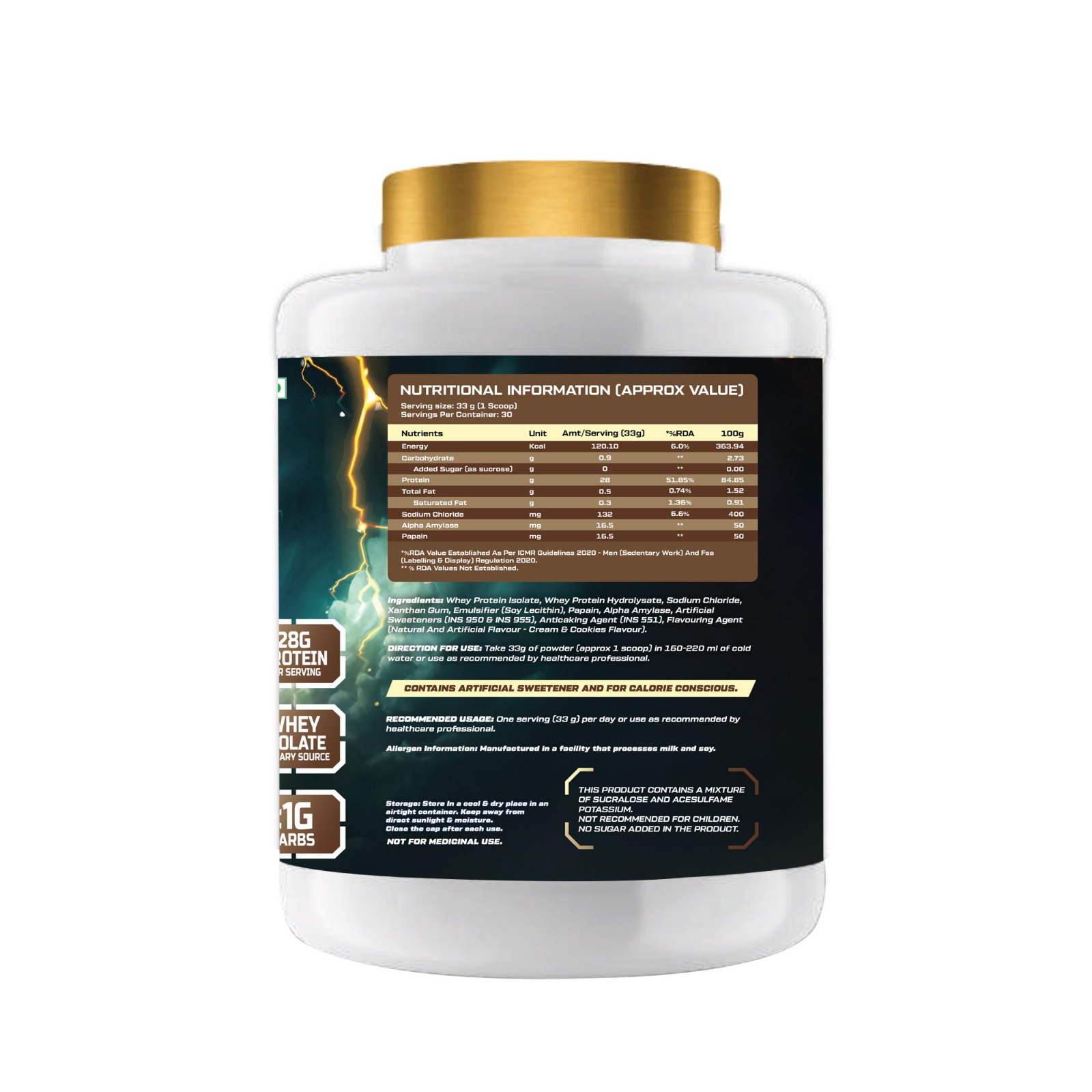 God of Whey Isolate Protein | 28g Protein per Serving | Ultra-Low Carb & Fat | 21 Vitamins & Minerals | Digestive Enzymes (Papain & Alpha Amylase) | Lean Muscle & Fat Loss | Cream N Cookies